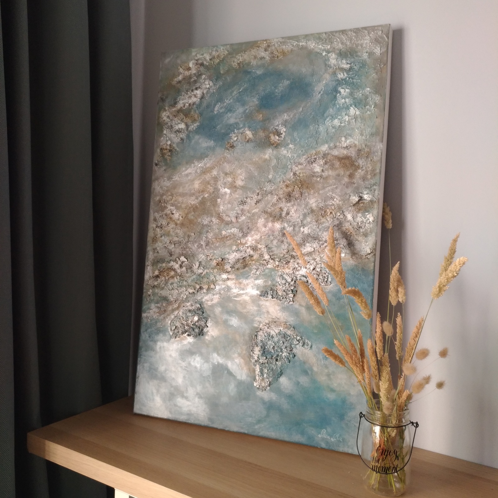 Obra única e original. Pintura acrílica em tela 100% de algodão com grades de madeira de abeto, certificada pela FSC. Sem Stock.