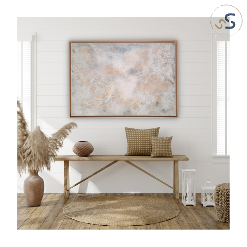 Pintada com movimentos suaves e tons neutros, esta obra transmite harmonia.