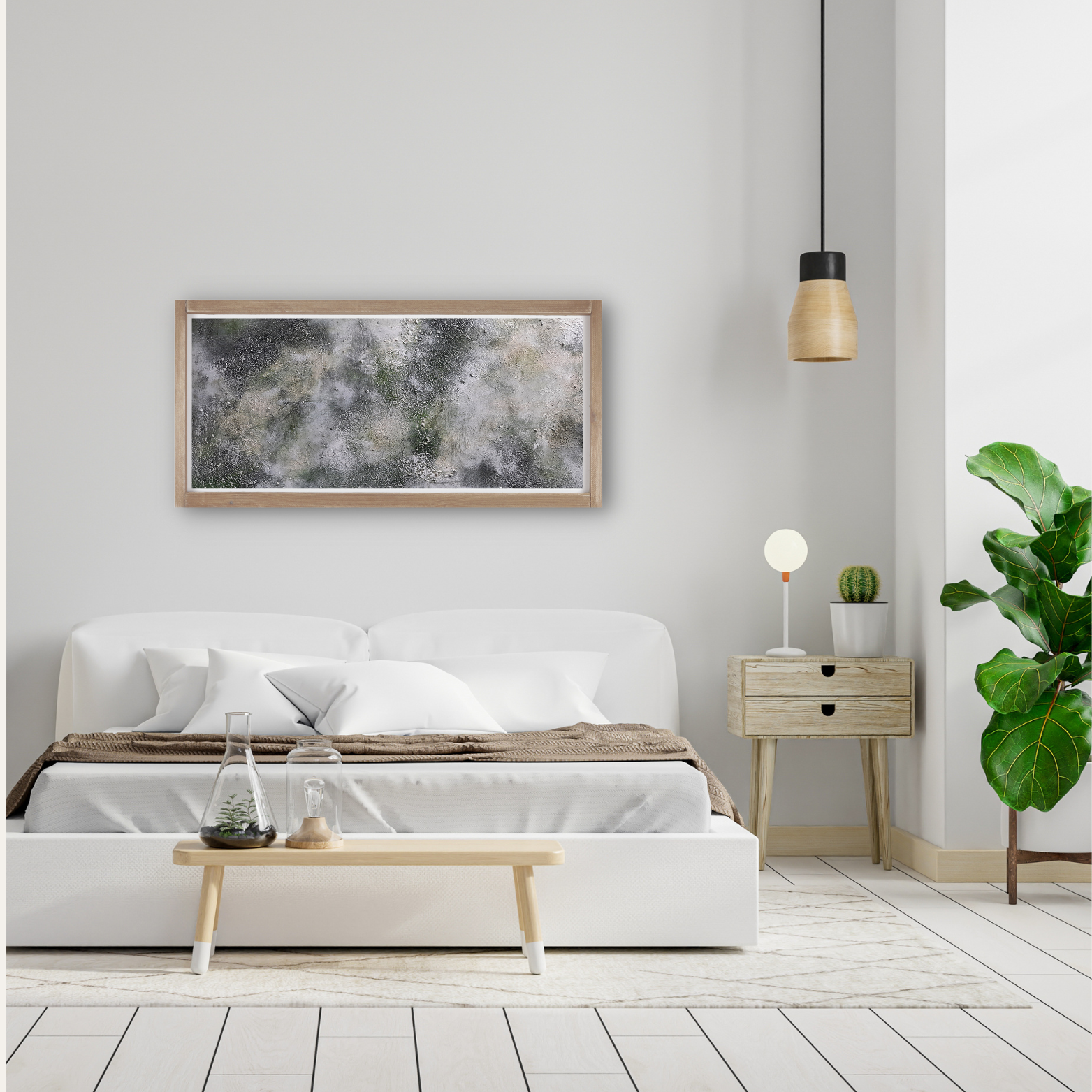 Obra única e original. Pintura acrílica em tela 100% de algodão com grades de madeira de abeto, certificada pela FSC.