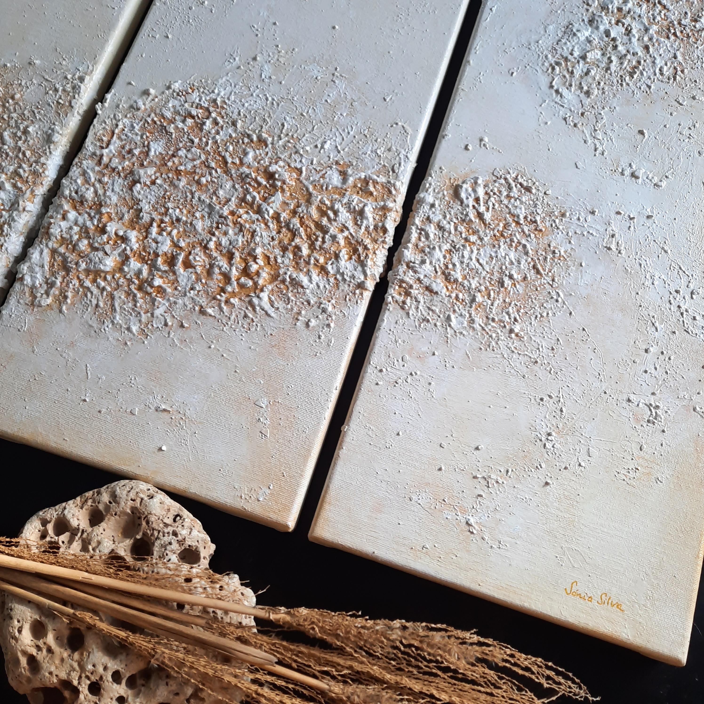 Tinta acrílica, areia, gesso, casca de ovo e verniz protetor